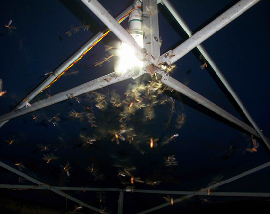 一般情況下,殺上幾百只工蟻和兵蟻一點意義都沒有。防治白蟻災害要滅殺蟻王和蟻后,或者整個群體一起端掉才能免除后患。而我們平常看到白蟻在某棵樹下的小洞洞進進出出,挖開洞口也可以清楚地看到“蟻道”,但實際上要通過蟻道找到蟻王和蟻后是非常困難的,這個洞口離它們的老巢可能有一百米遠。但分飛的時候,它們集體“起飛”的“分飛口”離蟻王蟻后的老巢卻只有10米左右,所以找到分飛口采取滅殺行動,效果最佳。